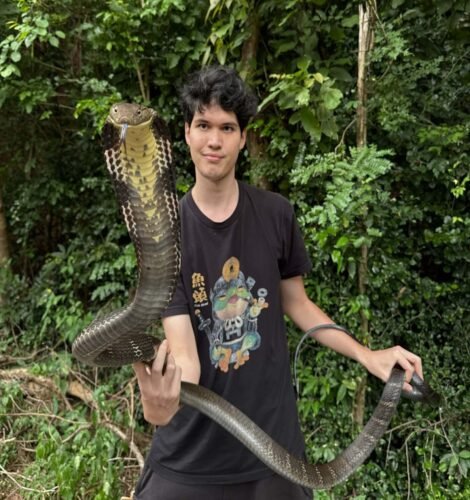 @chrisweeeet, un éleveur de reptiles mondialement reconnu pour sa relation unique avec les cobras royaux. Son regard, sa passion, et son approche respectueuse de la faune font de chaque sortie un moment rare et privilégié.