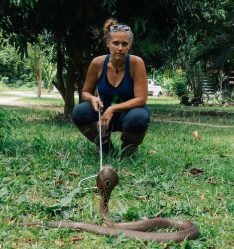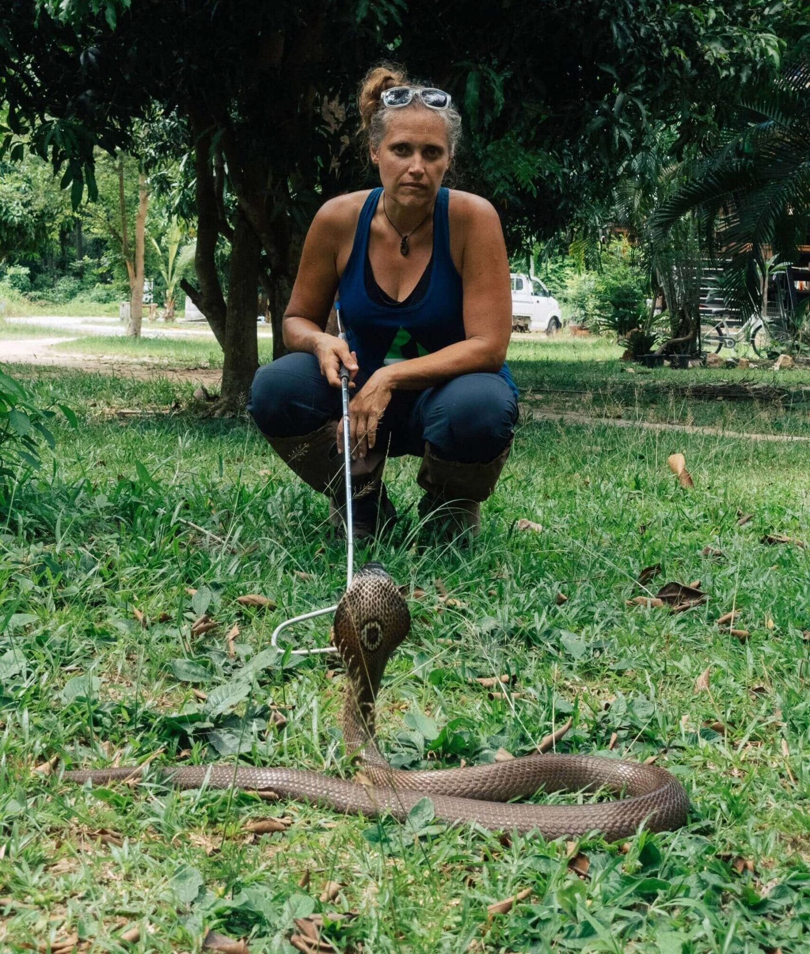 Dawn est américaine et vit en Thaïlande depuis longtemps . Passionnée de serpents depuis l’enfance et chercheuse sur le terrain, elle enseigne aussi la biologie aux nouvelles générations, ici en Thaïlande.